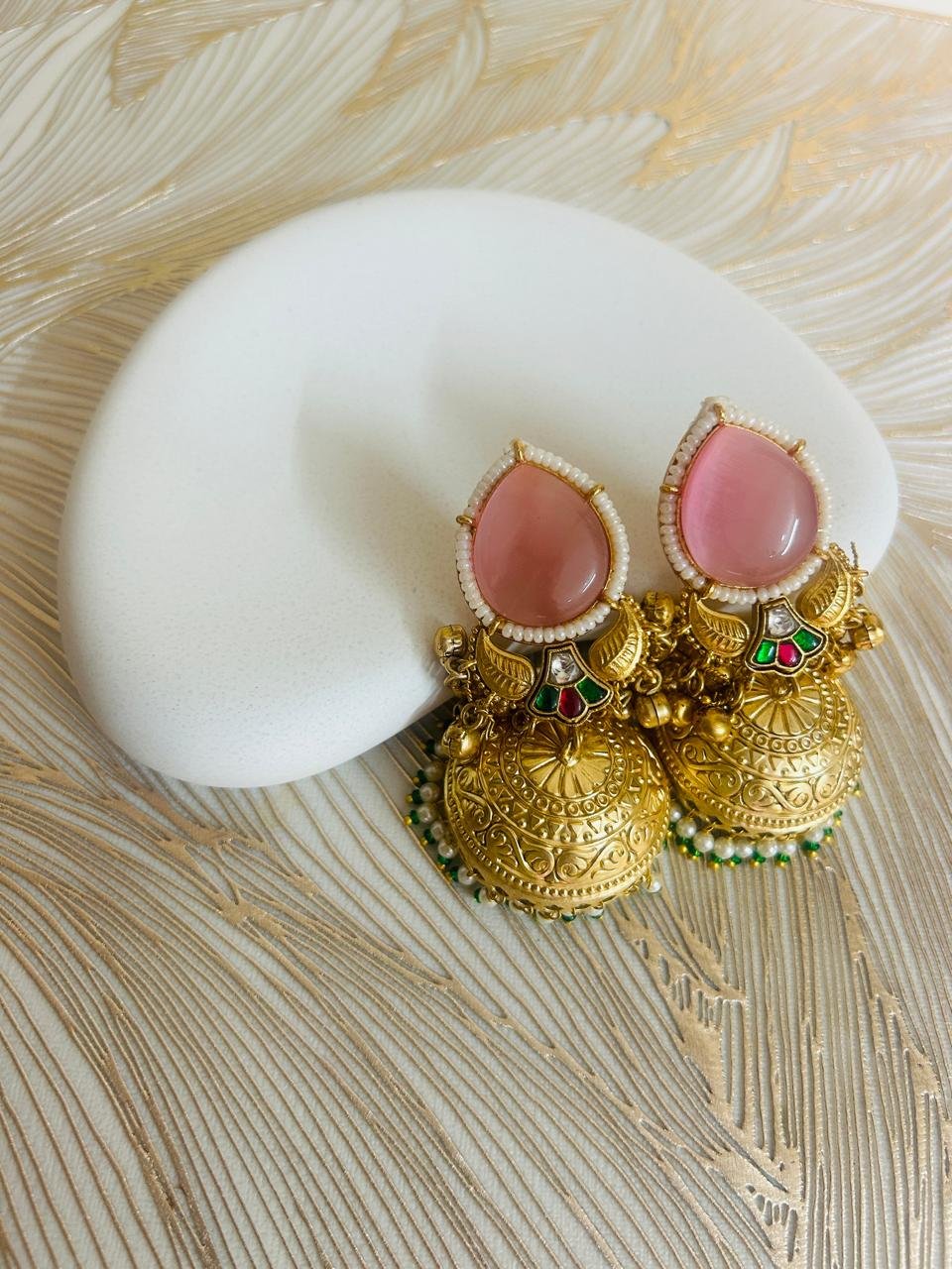 Be the first to review “Sharwani Gold Jhumki Pink”